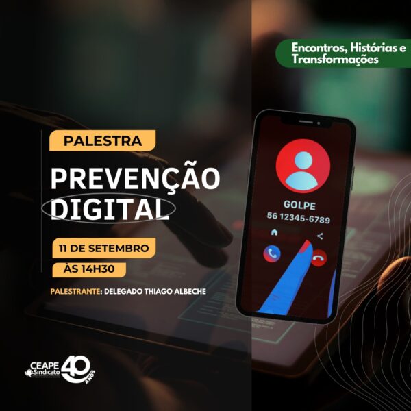 Delegado Thiago Albeche falou sobre formas de se proteger contra os golpes virtuais O delegado Thiago Albeche foi o convidado da terceira edição do programa Encontros, Histórias e Transformações, realizado pelo CEAPE-Sindicato e voltado aos associados aposentados e aposentadas. Delegado do Departamento Estadual de Combate a